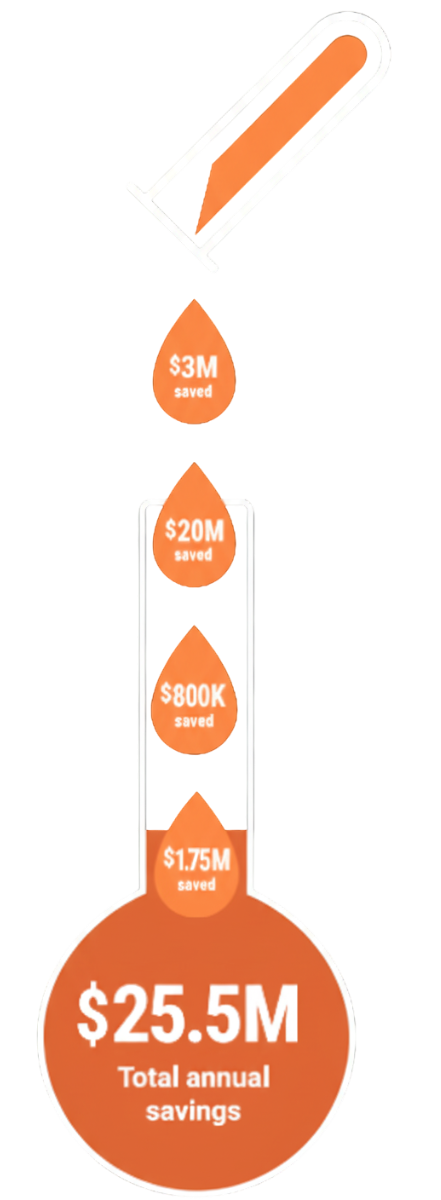 • Working Capital $20M saved - (supplier inventory) The company typically manages 10 days of raw materials valued at $10M per day, or $100M. By eliminating relabeling, it conservatively removes 2 days of required safety stock, or $20M savings in carrying costs.